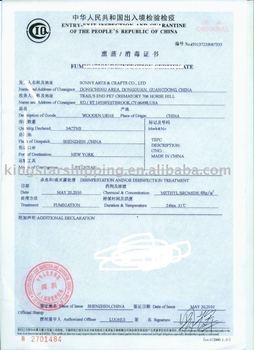 Treatment certificates must also contain any other statement as . Hi all, I am importing a container load from outside the EU consisting of decorative items made from stone that have a wooden base. Online vertaalwoordenboek. NL: fumigation certificate.