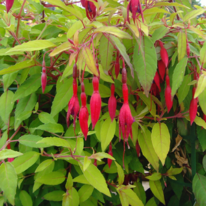 Leaves gold to yellow-green, best in semi-shade as strong sunlight may scorch. Calyx tube and sepals scarlet, petals dark purple. Discover how to grow, prune and mulch hardy fuchsia.
