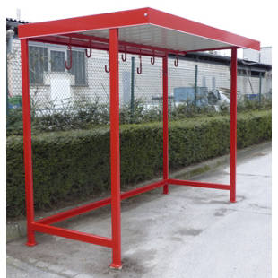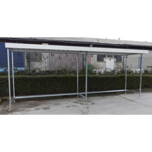 Fietsoverkapping: Karin. Rijwieloverkapping model Karin. Een zeer voordelige en degelijke fietsoverkapping. Uitgevoerd met een verzinkt buizen-frame en een schuin aflopend dak. Lengte meter, dus plek voor fietsen !