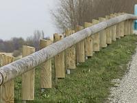 HAARLEM Rijkswaterstaat plaatst langs de Abij Veghel voor het eerst houten vangrails. De hardhouten rails zouden veiliger zijn dan de stalen varianten. Bovendien wil de dienst iets doen tegen het lekken van zink uit stalen rails. RIJKEVORSEL - Gemeentearbeiders hebben aan de Markweg een vangrail geplaatst naast de waterloop.