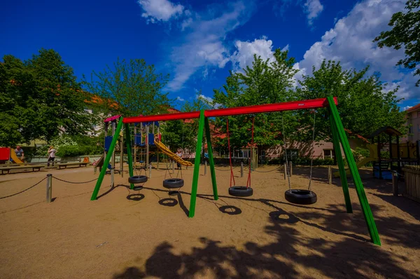 In heel Vlaanderen zijn er toffe buitenspeeltuinen waar kinderen zich kunnen uitleven: kleintjes op de hoek van een straat of grote met uitdagende speeltuigen waar je gerust een hele dag kan verblijven. Vlieg maakte een overzicht van de speeltuinen die het ontdekken waard zijn. Aan de rand van een woonwijk, tegen de bossen, ligt een mooie openbare speeltuin. Een geweldige plek voor jonge- en oudere kids. De enige andere bezoekers op deze herfstachtige ochtend waren.