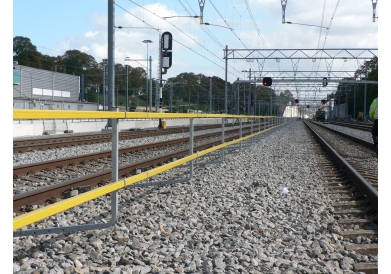 De certificering is niet van ProRail alleen maar is van de hele spoorbranche vertegenwoordigd in railAlert. De onderdelen zijn algemeen verkrijgbaar, m. Bovendien is de norm waaraan safety fences moeten voldoen inmiddels een bindende Europese norm geworden die geldt voor de hele EU. Die Safety Fences worden onder de spoorstaaf geklemd en vormen een degelijke fysische barrière voor de werknemers tijdens werken naast een spoor in dienst. De steunen zijn uitgevoerd in RVS en zijn in breedte instelbaar. Dit nieuwe hekwerk wordt, in tegenstelling tot andere zogenoemde Safety Fences , bevestigd aan de spoorstaven zodat er geen ballast meer onder de spoorstaaf verwijderd moet worden.