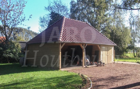 De houten kapschuur bestaat uit een eiken constructie, uitgevoerd met een eiken sporenkap met genuanceerde dakpannen. De prachtige houtbouw kapschuur is uitermate . Laat uw houten kapschuur bouwen door Jaro Houtbouw: dé specialist in houtbouw. Hier vindt u het aanbod van een houten kapschuur die zowel uit voorraad als op maat te verkrijgen is tegen een aantrekkelijke prijs.